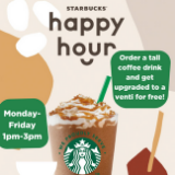 - Buy any Tall drink and we will upgrade it to a Venti for FREE
